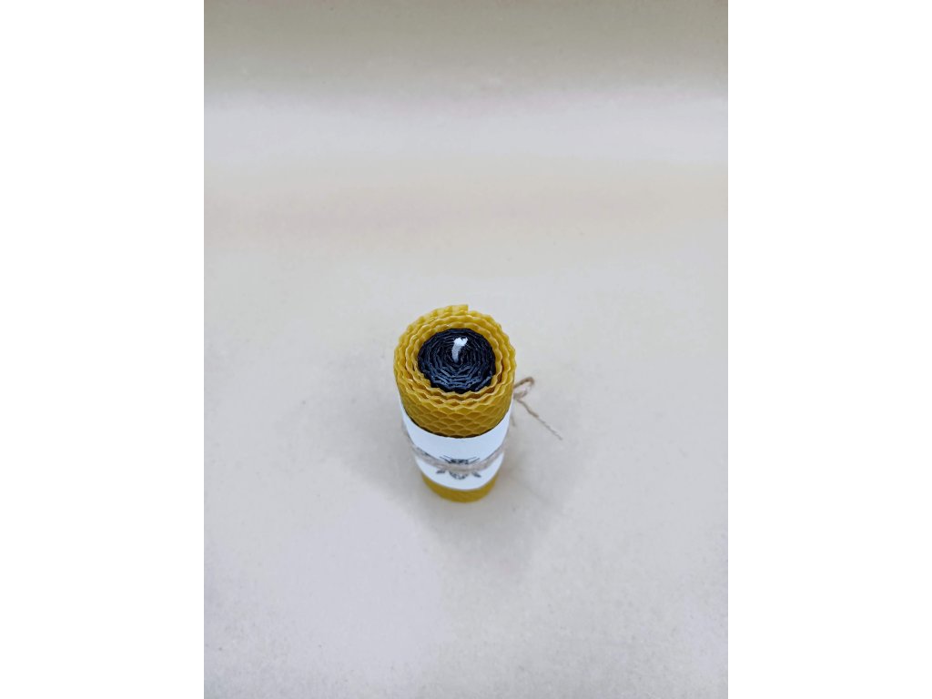 Krásná motaná svíčka ze 100% včelího vosku z kolekce Black and Yellow je ruční prací od začátku do konce. Je vyrobena z přírodní a černé mezistěny, kterou si sami odléváme z vosku od našich včel, 100% bavlněného knotu a nakonec je dozdobena ručním papírem od papírníka Michala Gorce z Papyrey.
