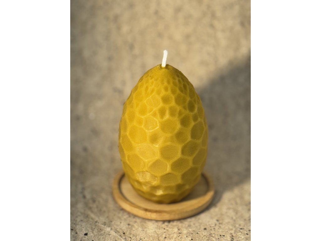 Zrozená z medového světla, tato svíčka nese tvar života – vejce, které ukrývá teplo, vůni a tichou sílu přírody. Její povrch připomíná plástev, jako by ji včely samy vymodelovaly z voskových snů. Je to svíčka pro chvíle, kdy se svět zpomalí a rozvoní.